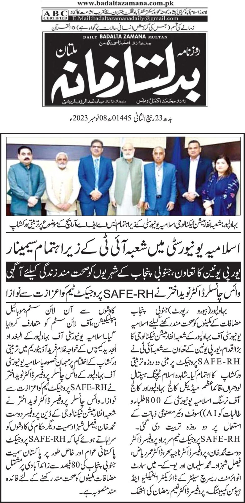 News highlight of Training Session at Shahida Islam Medical College and Hospital by daily Badalta Zamana