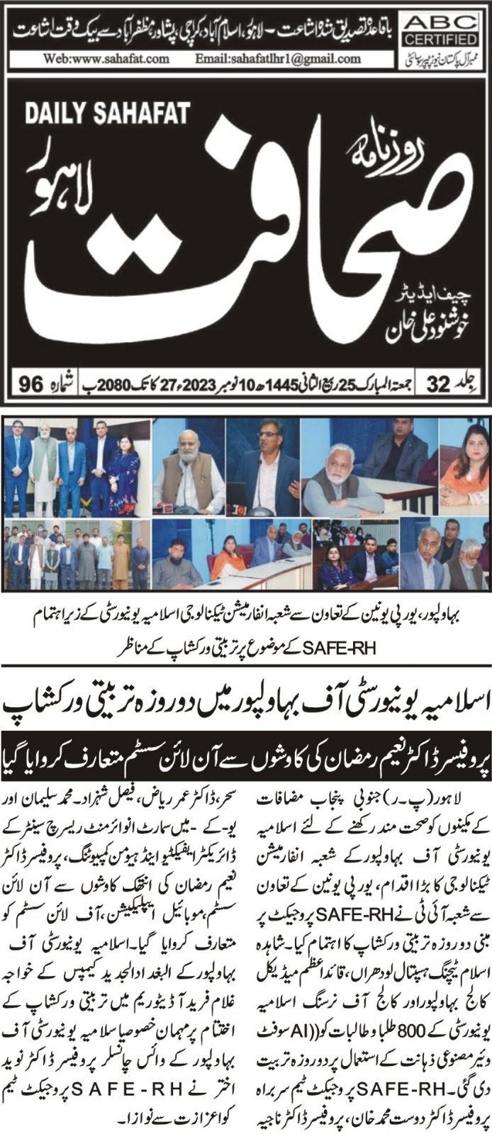 News coverage of special Training Session at Quad e Azan Medical Hospital Bahawalpur and Shahida Islam Medical College and Hospital Bahawalpu